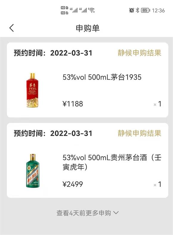 距離最早媒體曝出貴州茅臺新電商平臺“i茅臺”APP即將上線,到貴州茅臺發布消息強調 “茅臺新電商平臺只銷售四種新品,普通飛天茅臺不在其列”,再到3月31日新電商平臺正式上線,可以在線申購茅臺酒已經過去一個多禮拜了。 今天酒評網值班編輯小酒瓶就將在“i茅臺”電商APP上申購茅臺酒的試用過程為酒友們做個體驗報告,順便做幾點評論。 新電商平臺上線后第一時間,小酒瓶便通過手機APP商店下載了“i茅臺”APP,并按照要求進行了賬號注冊并實名認證,這一步很重要,關系到中簽后能否以官方指導價提到貨。 按照申購預約流程,每天上午9:00-10:00開始受理預約,申購的產品包括53度500ml貴州茅臺酒(壬寅虎年)、53度500ml茅臺1935、53 度 375ml*2(壬寅虎年)、53 度 500ml 貴州茅臺酒(珍品)。申購完成后,18時將會產生今日預約申購結果。屆時,用戶收到短信提示后,即可按照平臺規則付款提貨。