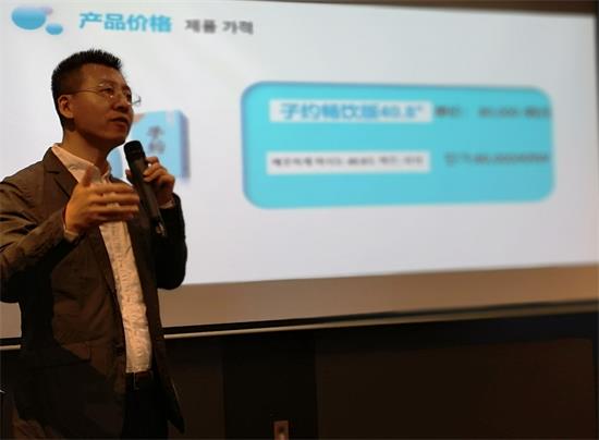 孔府家酒CEO劉濤 孔府家酒CEO劉濤在發布會上詳盡的介紹孔府家酒的發展,子約Ⅴ暢飲版定位、賣點、團隊、設計等,并回顧了子約發展進程,還結合孔府家酒在韓國連續四年蟬聯大韓民國酒類大賽大賞獎感謝韓國總代理的努力及韓國消費者的支持,并宣布子約Ⅴ暢飲版于10月19日中韓兩國同步預售,國內零售價159元,韓國零售價80000韓元。