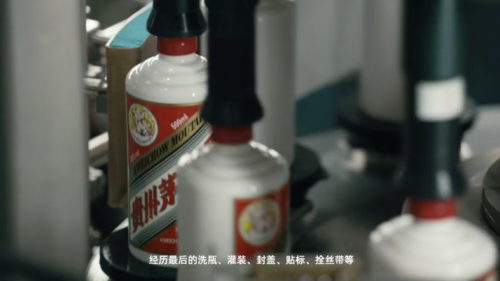 在茅臺包裝車間,茅臺酒的包裝工藝要經歷洗瓶、灌裝、封蓋、貼標、拴絲帶等幾十道工序。其中,栓絲帶就包括:一擰二套三打結四齊五穿六拉緊七拴八疊九直十對位的操作“十步法”,紅色飄逸的絲帶是茅臺酒的一大亮點和特色,最后拴好的絲帶兩邊一樣長,正對酒瓶上“貴州茅臺酒”的“茅”字。