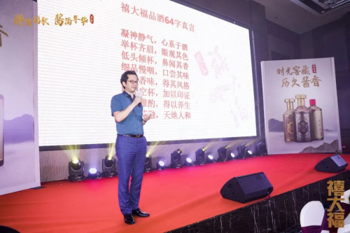禧大福生產部總經理黃立強先生,在活動現場慷慨陳詞,和現場嘉賓們共同探討中國醬香型白酒的發展趨勢,細心講述醬酒勾調比例,更是現場傾囊相授醬酒品鑒之道——“禧大福64字品酒真言”!品酒論人生,談笑風生,滿載而歸。