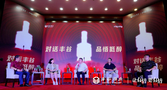 體驗中,在豐谷品牌大使、國家級白酒評委李丹的帶領下,嘉賓們通過李丹老師精煉的專業知識熏陶下學習白酒品鑒。從“眼觀色,鼻聞香,口嘗味,綜合鑒評風格,打分評價”六個維度,深度品鑒豐谷美酒,并把自己在豐谷之旅中對白酒的感悟融入酒中,融情于酒,獨創專屬豐谷美酒。 03,大咖對話 洞察趨勢 展望未來 在游玩和體驗之后,正式開啟了“對話豐谷 品悟低醉”主題論壇。豐谷酒業總經理、教授級高工、中國首席白酒品酒師盧中明,微酒總經理張靜,云酒頭條副總裁周曉,網易酒香頻道總監程萬松(論壇主持人)作為訪談嘉賓出席。無獨有偶,中國白酒著名專家、源坤機構創始人、中國白酒品鑒知識普及推廣第一人鐘杰恰好赴綿考察,聽聞此活動,欣然前來,共話低醉酒度。論壇圍繞行業品質創新、低·醉酒度和消費升級趨勢展開深入討論,受訪嘉賓分別從行業專家、媒體人、企業經理人、低醉酒度科研帶頭人等不同角度暢談自身看法。